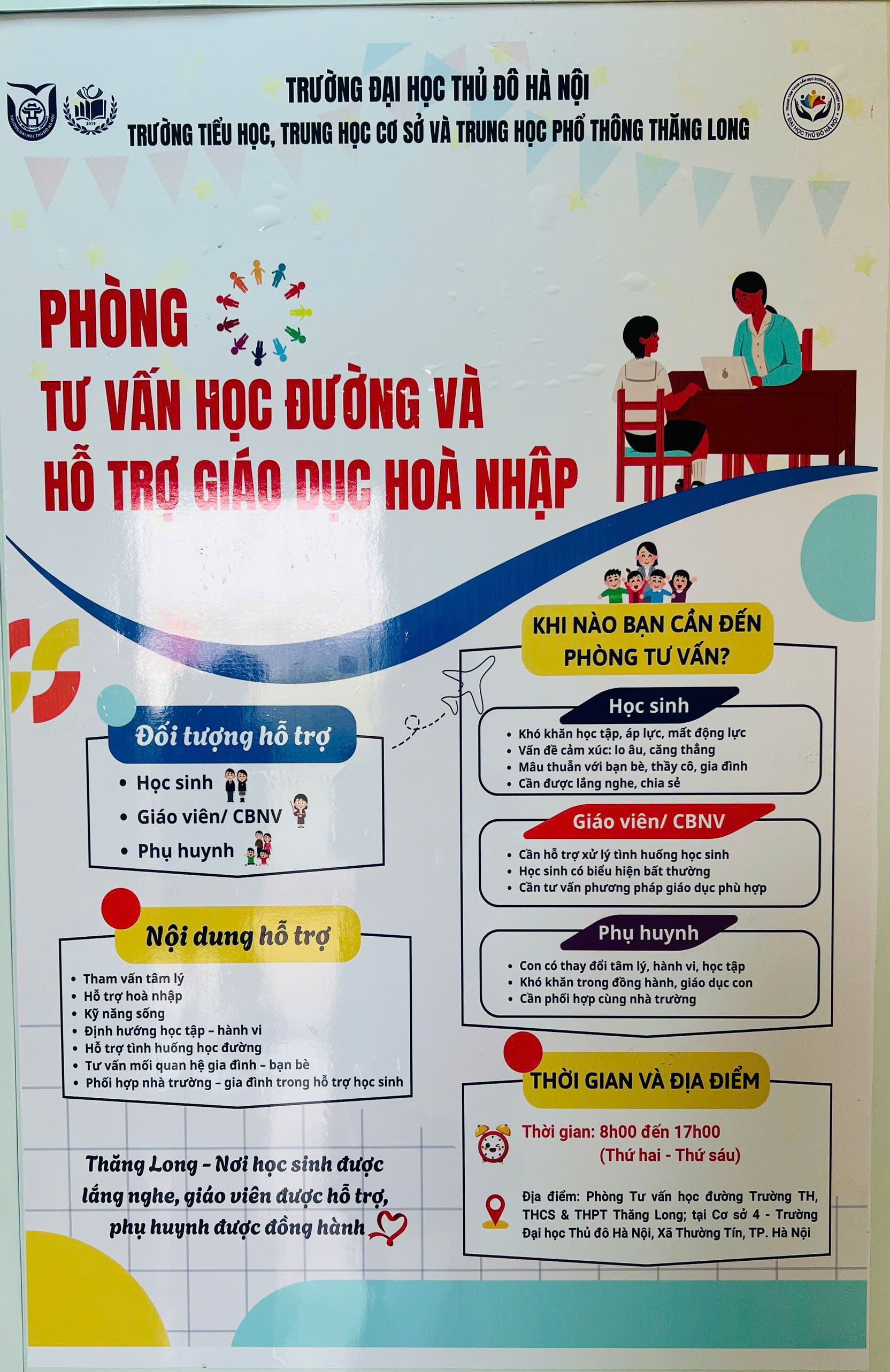 Địa điểm: Phòng Tư vấn học đường và Hỗ trợ Giáo dục hòa nhập - Cơ sở 4, Trường Đại học Thủ đô Hà Nội, xã Thường Tín, TP. Hà Nội.