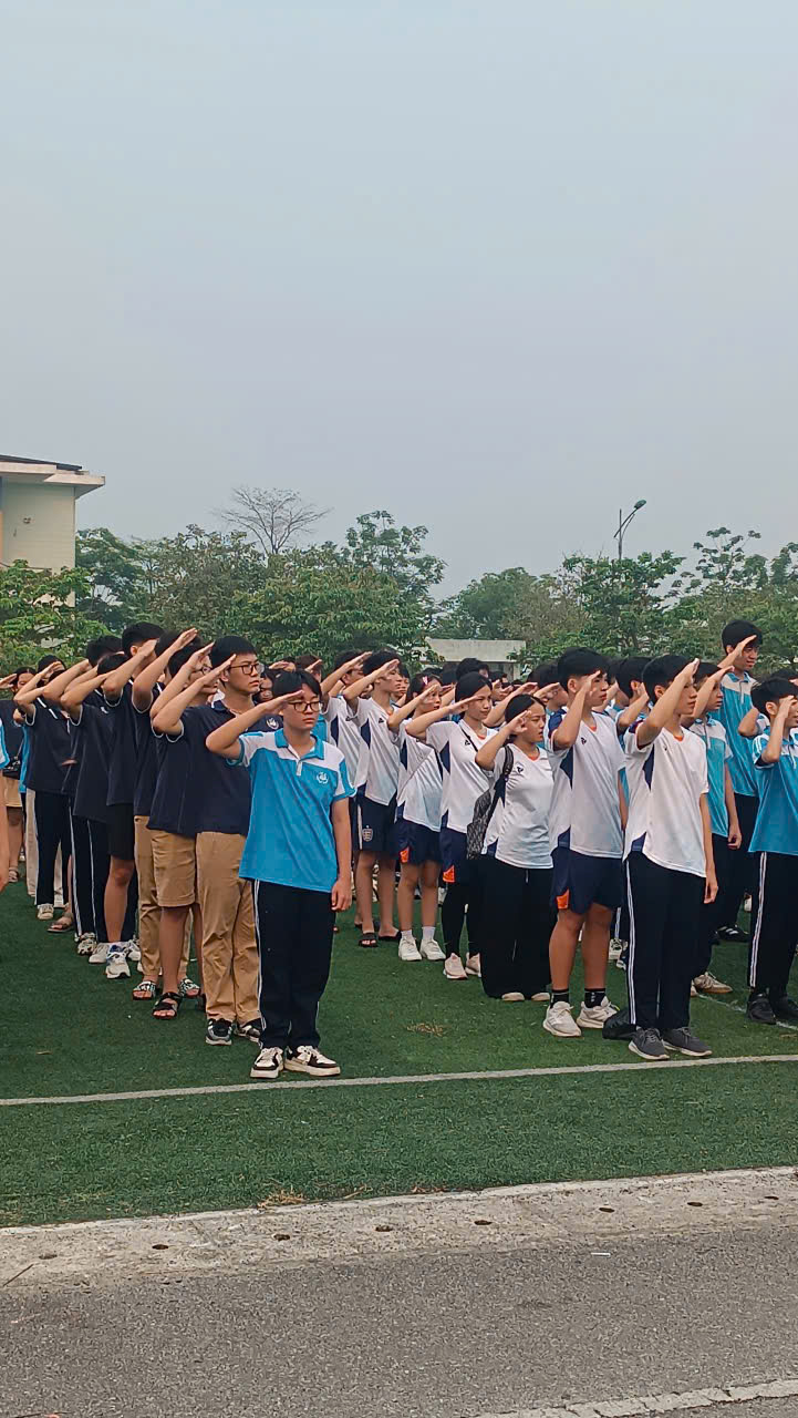 Ảnh 1: Học sinh chào cờ trước khi Hội thao Olympics Thăng Long năm 2026 tại sân thể thao nhà trường.