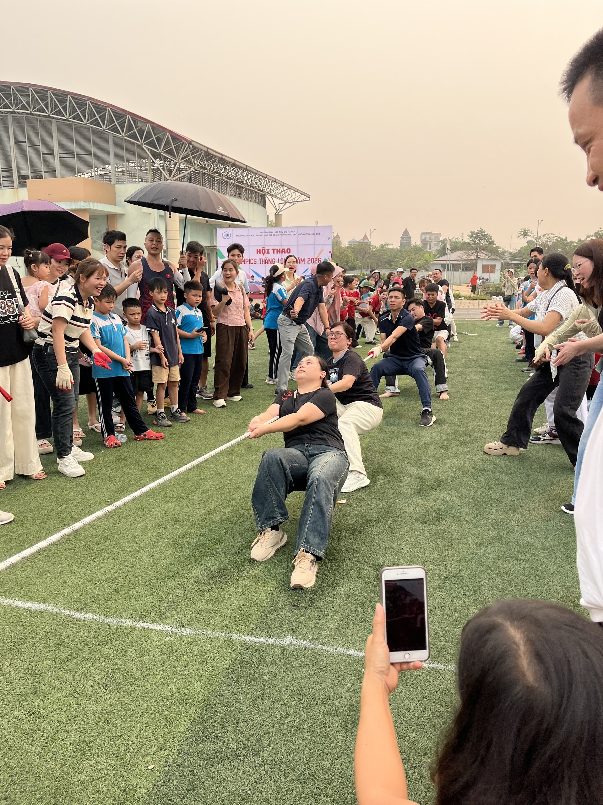 Điểm nhấn nổi bật của hội thao năm nay chính là hệ thống nội dung thi đấu đa dạng, hấp dẫn và giàu tính kết nối. Từ những màn kéo co sôi nổi giữa học sinh với học sinh, phụ huynh với phụ huynh theo từng lớp, từng khối, đến phần thi chạy dành riêng cho phụ huynh – tất cả đã tạo nên một bức tranh thể thao rực rỡ, tràn đầy năng lượng.