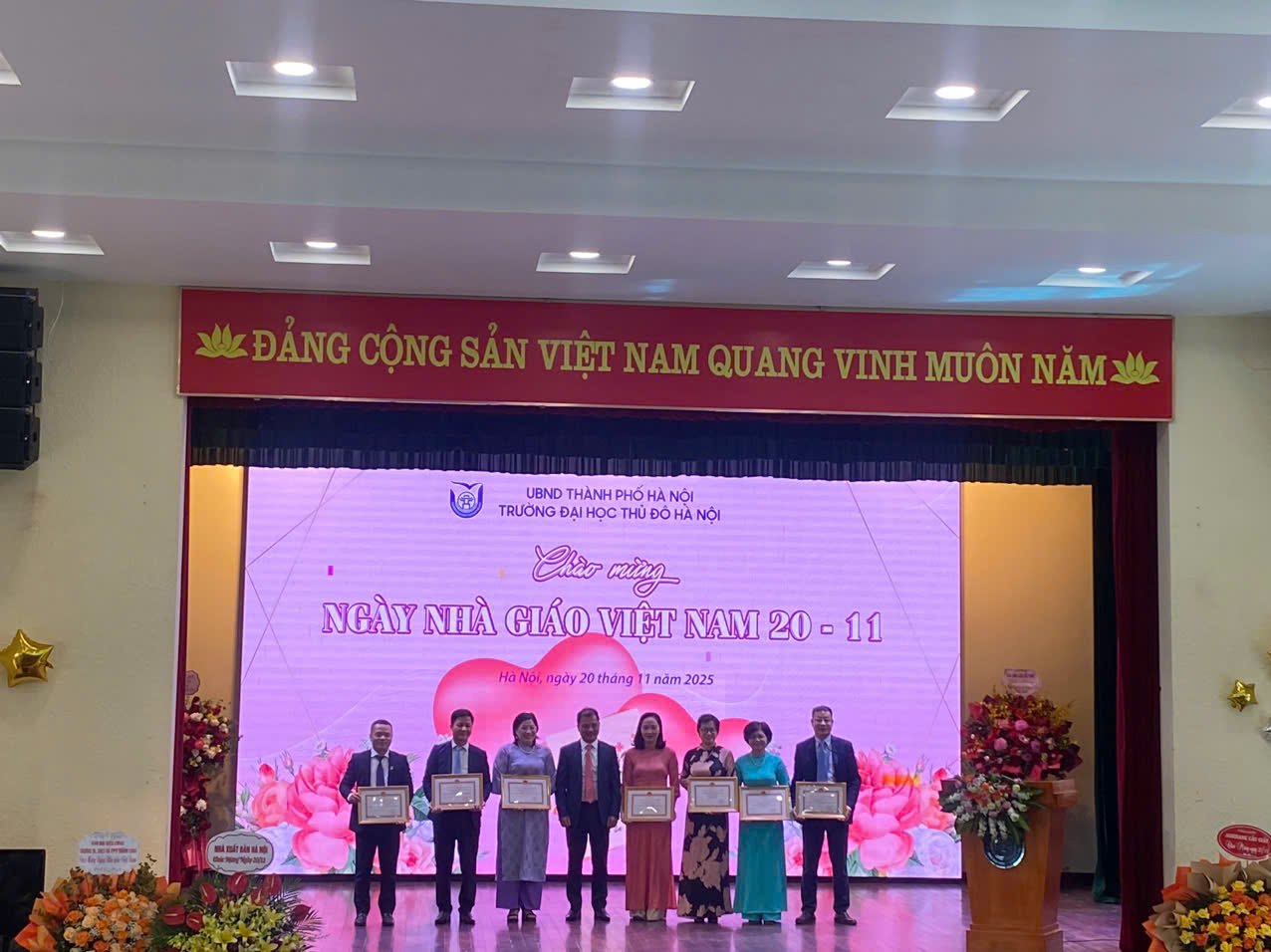 Một trong những hình ảnh đẹp nhất của buổi lễ là khoảnh khắc 18 học sinh đại diện toàn thể học sinh nhà trường dâng hoa chúc mừng Ban Lãnh đạo trường Đại học Thủ đô Hà Nội. Hành động giản dị nhưng giàu ý nghĩa này đã khắc họa sâu sắc tinh thần tôn sư trọng đạo, thể hiện lòng biết ơn chân thành của học trò đối với những người thầy đang ngày đêm nỗ lực vì sự nghiệp giáo dục.