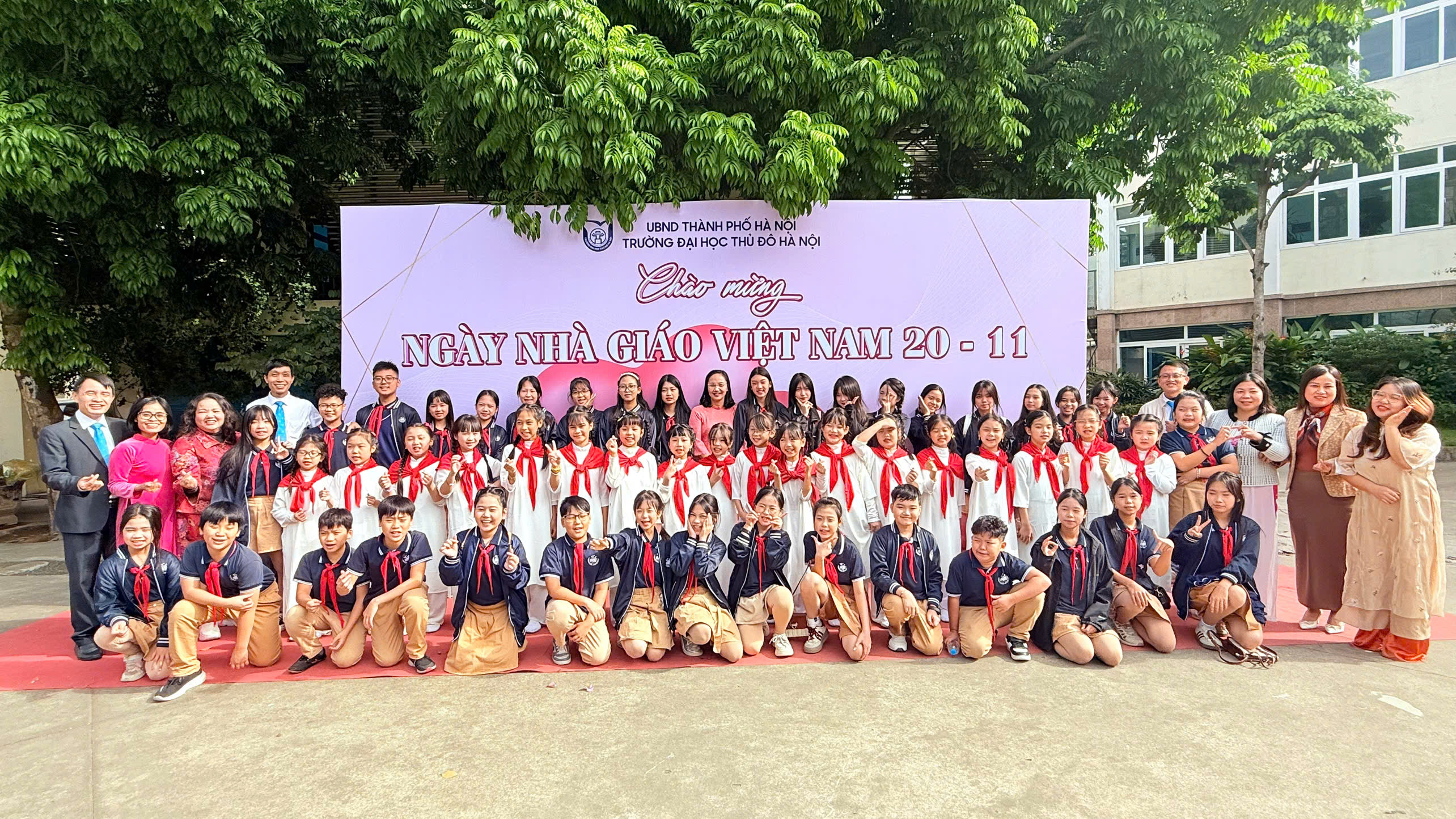 Tập thể thầy cô và học sinh Trường Thăng Long tham dự Lễ kỉ niệm Ngày Nhà giáo Việt Nam 20/11 tại Trường Đại học Thủ đô Hà Nội