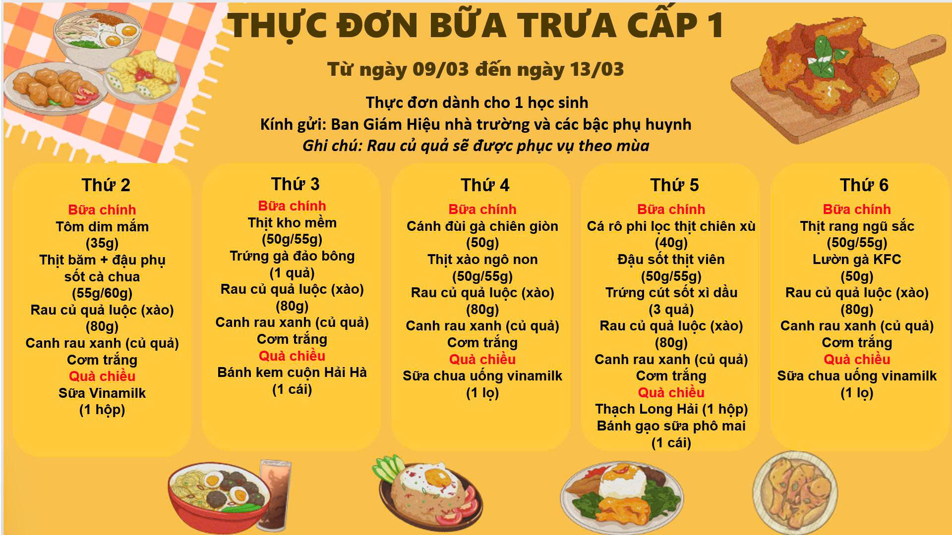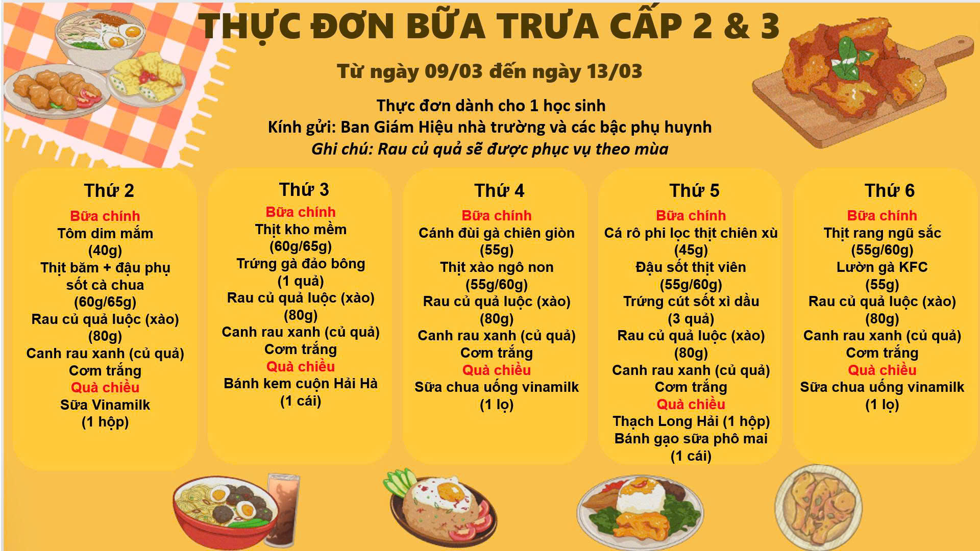 THỰC ĐƠN TUẦN 2 THÁNG 03 - 2026