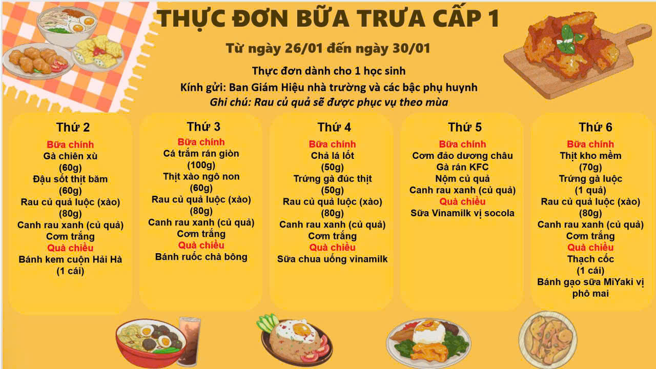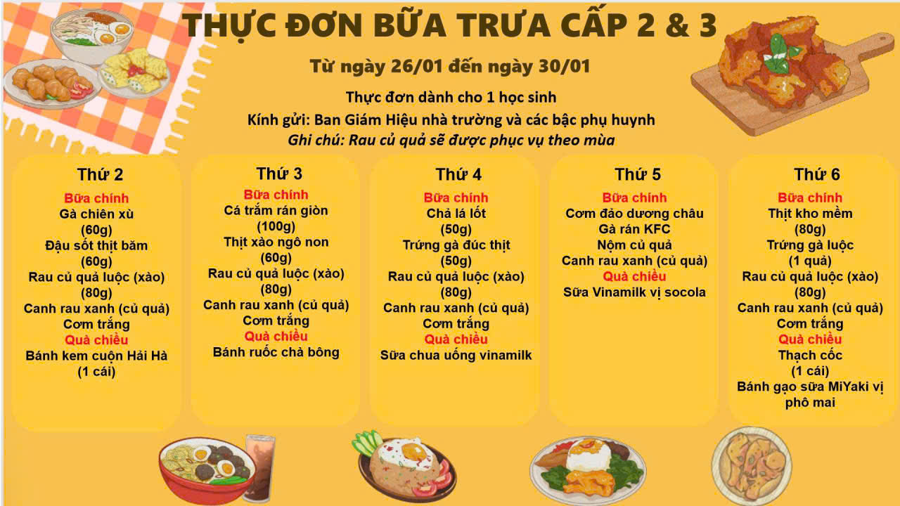 THỰC ĐƠN TUẦN 4 THÁNG 01 - 2026