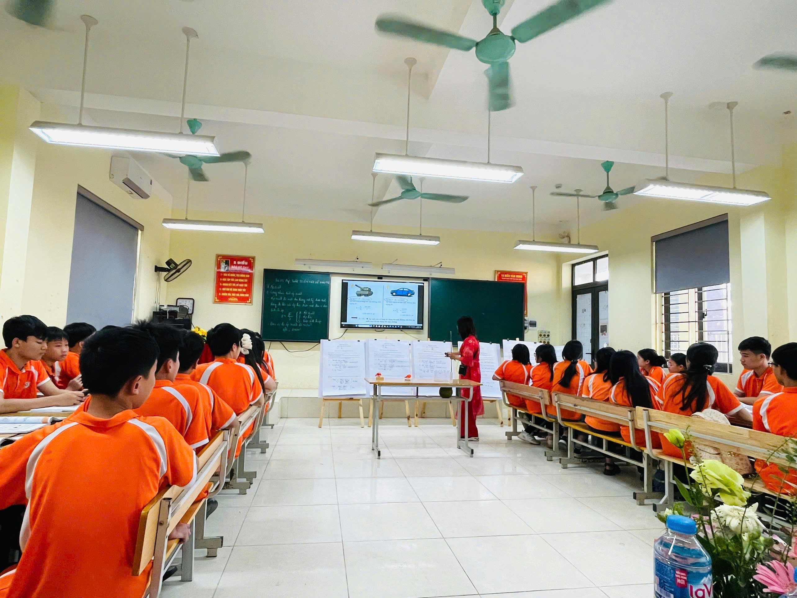 Tiết học được thiết kế công phu với bố cục chặt chẽ, hệ thống kiến thức mạch lạc và phương pháp tổ chức khoa học. Cô Lan Anh khéo léo lồng ghép các thí nghiệm trực quan, giúp học sinh quan sát, phân tích và rút ra kết luận khoa học một cách chủ động. Phong thái tự tin, giọng giảng truyền cảm và sự linh hoạt trong dẫn dắt đã tạo nên một bài học giàu tính ứng dụng, thể hiện rõ bản lĩnh sư phạm của cô.