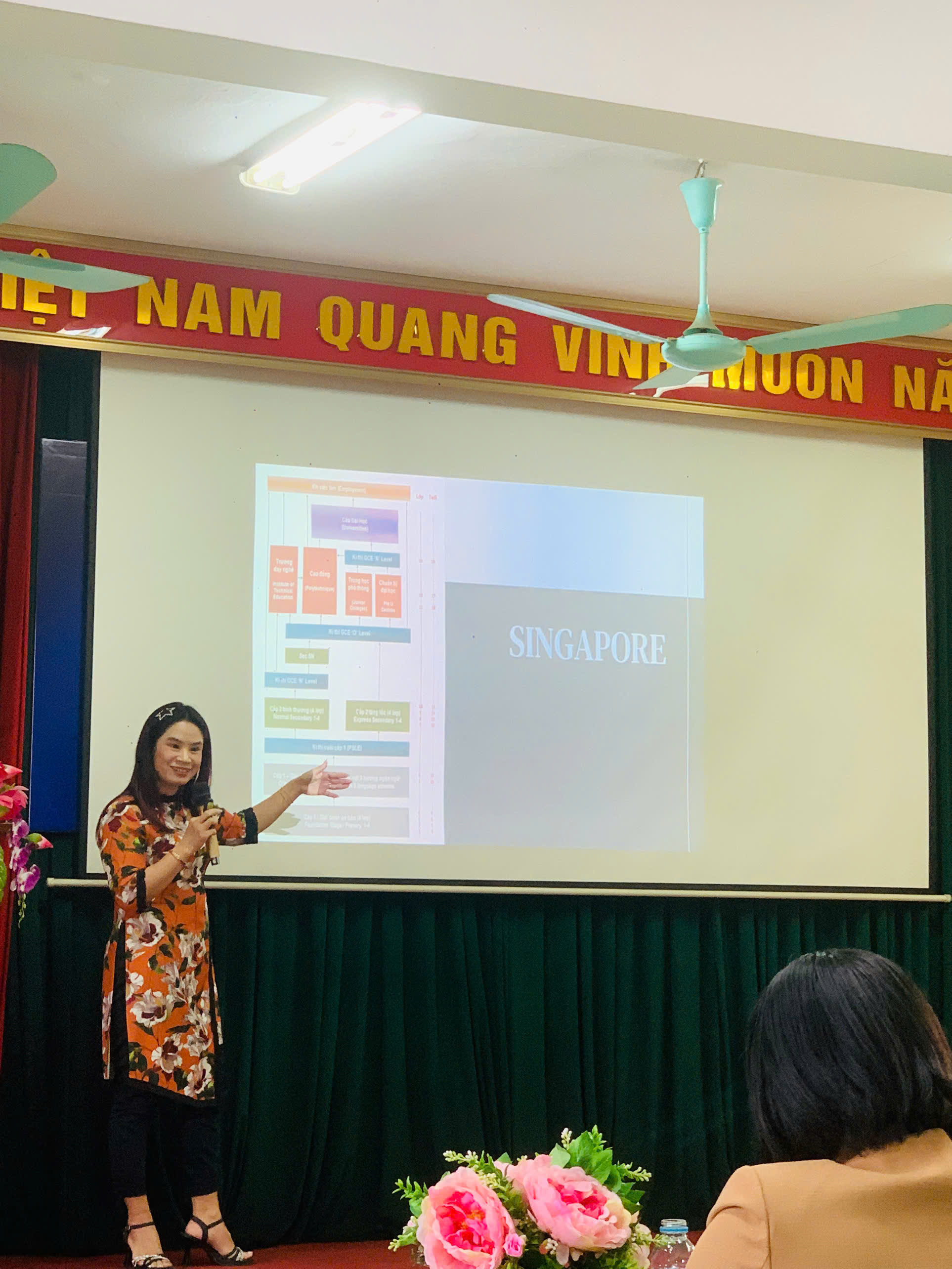 Bức tranh giáo dục thời đại số tiếp tục được phác họa sắc nét qua bài tham luận về hệ sinh thái học tập sáng tạo dựa trên trí tuệ nhân tạo của TS. Hoàng Thị Mai. Ngay sau đó, TS. Đinh Thị Kim Thương đã cụ thể hóa những định hướng ấy bằng các giải pháp thực tiễn “sát sườn”, phản ánh chân thực nhịp sống công nghệ đang diễn ra tại chính ngôi trường TH, THCS & THPT Thăng Long.