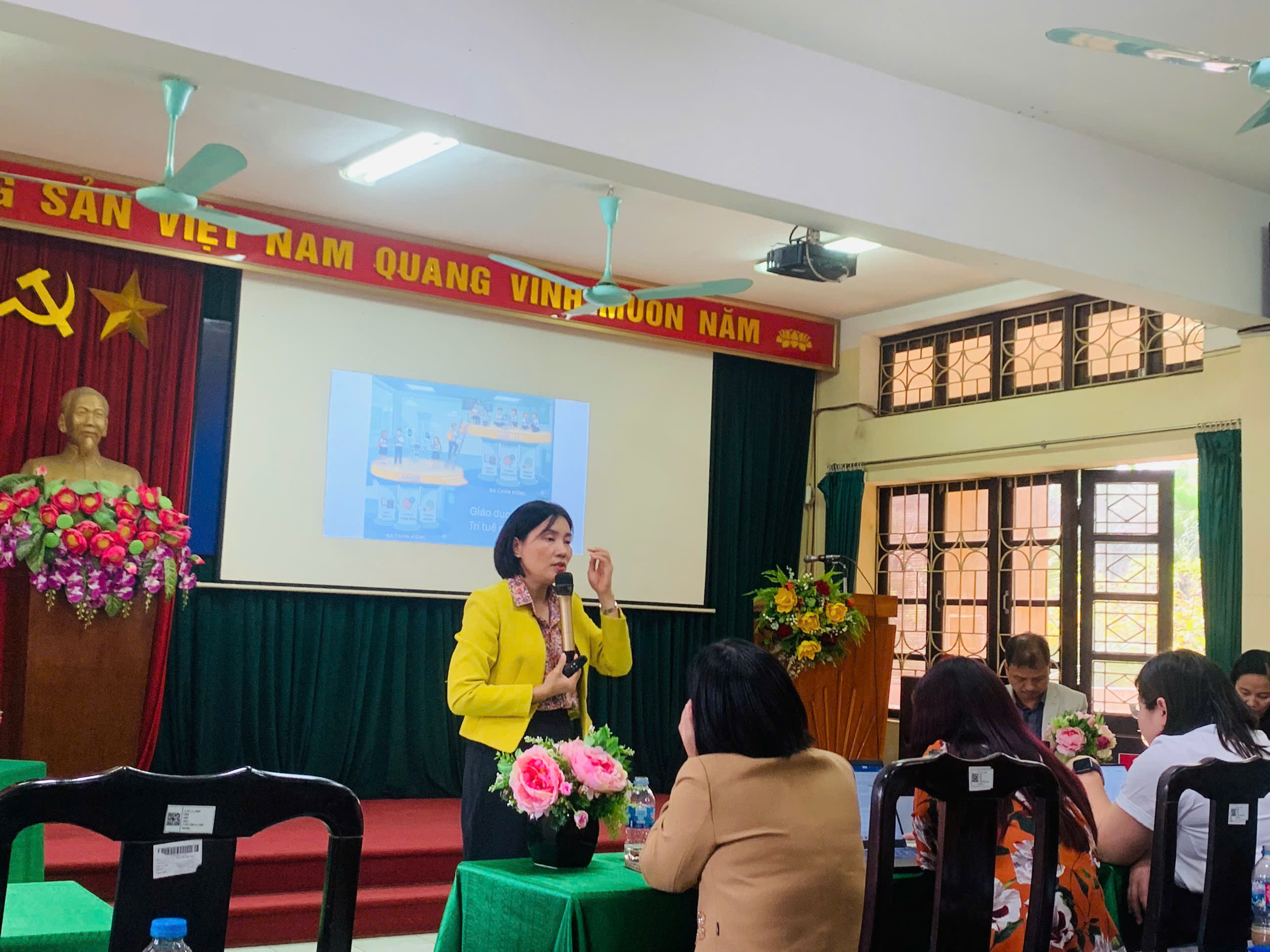 Một trong những khoảnh khắc ấn tượng nhất của hội thảo chính là việc đi sâu vào từng lớp học, từng môn học cụ thể. TS. Lê Thị Lan Anh đã khiến cả hội trường thích thú khi trình diễn khả năng khơi gợi sự tò mò của học sinh lớp 8 qua phần mềm thực tế ảo Human Anatomy Atlas, biến những bài học về cơ thể người trở nên sống động như thật. Trong khi đó, TS. Đoàn Thị Huyền lại mang đến những con số thuyết phục về sự gia tăng hứng thú của học sinh khi được trải nghiệm các thí nghiệm ảo trong môn Khoa học tự nhiên. Ở góc độ quản lý, Th.S. Nguyễn Thị Thu Hiền – Phó Hiệu trưởng nhà trường, đã chia sẻ những trăn trở và giải pháp nhân văn để giúp học sinh sử dụng AI một cách thông minh và chuẩn mực trong bối cảnh địa phương.