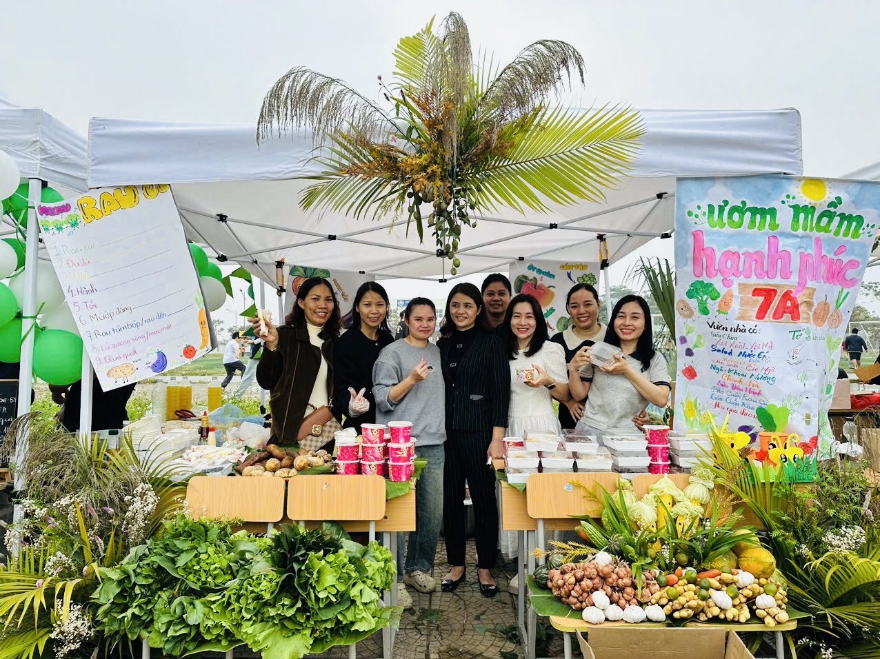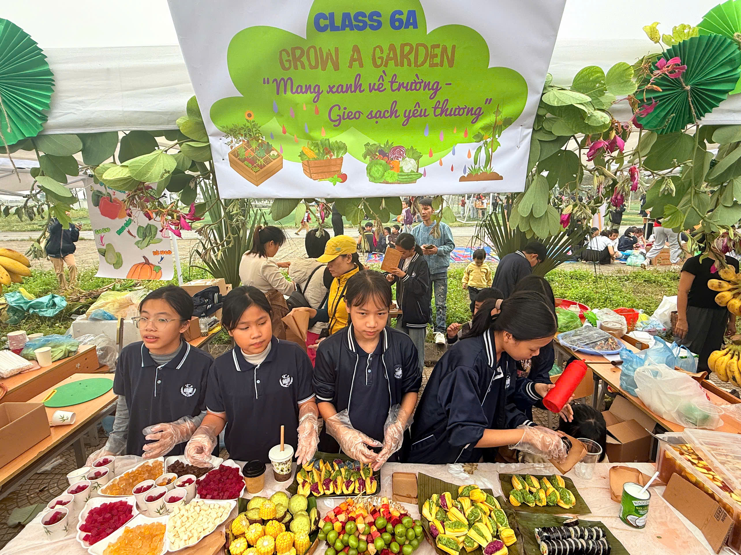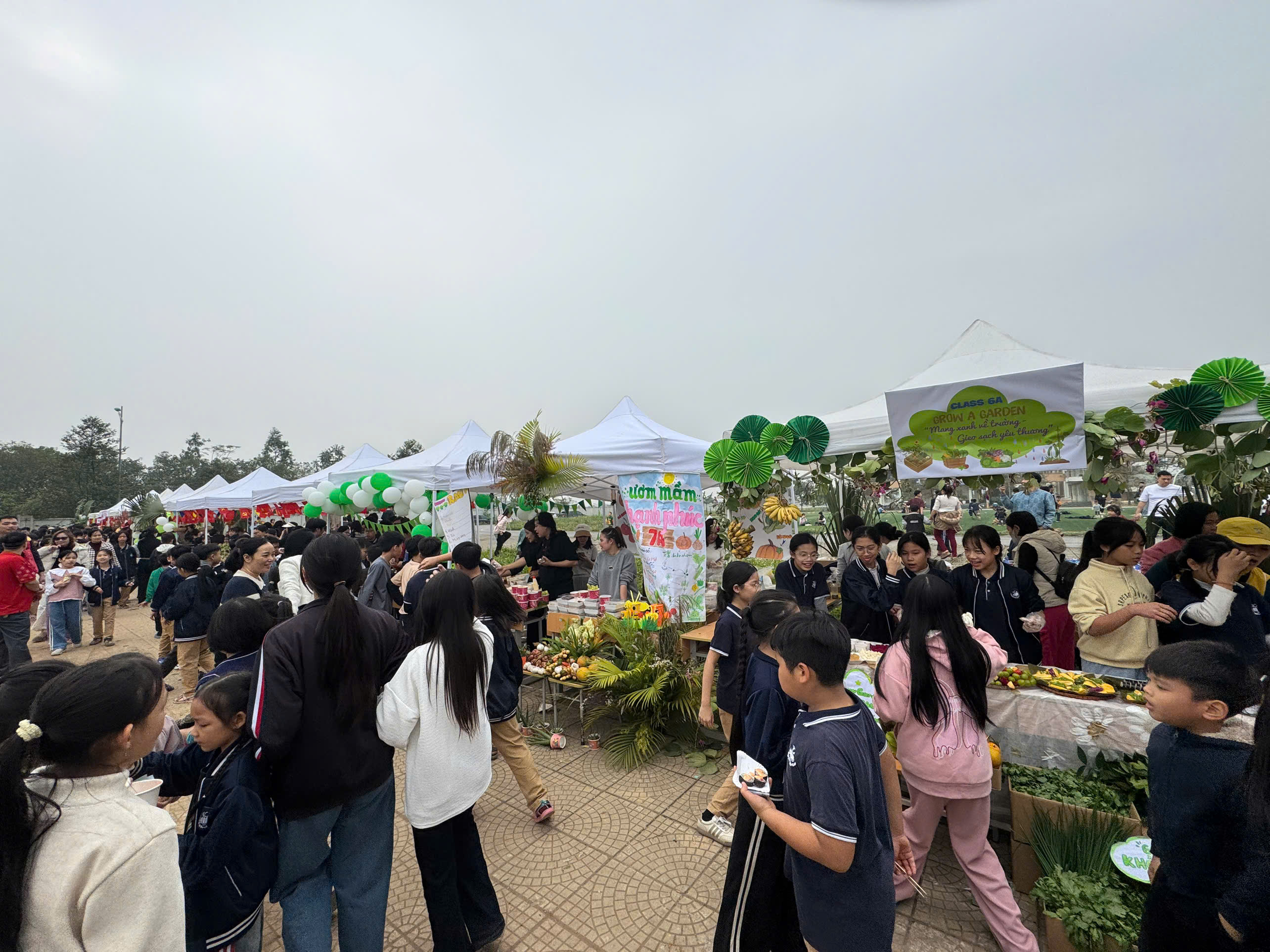 Ngay từ sáng sớm, các em học sinh đã rất hào hứng và sẵn sàng với vai trò là những người bán hàng, giới thiệu sản phẩm của lớp mình. Các gian hàng đã được học sinh chuẩn bị hết sức công phu, đúng theo tinh thần của một "Phiên chợ xanh." Các gian hàng bày bán phong phú các loại rau củ, thực phẩm sạch được thu hoạch từ chính vườn thực nghiệm của trường (thực hiện theo yêu cầu chương trình), cùng với đồ ăn và thức uống xanh, lành mạnh (như Trà chanh sả, Sữa chua, Xôi lá dứa, Bánh chuối hấp, v.v.).