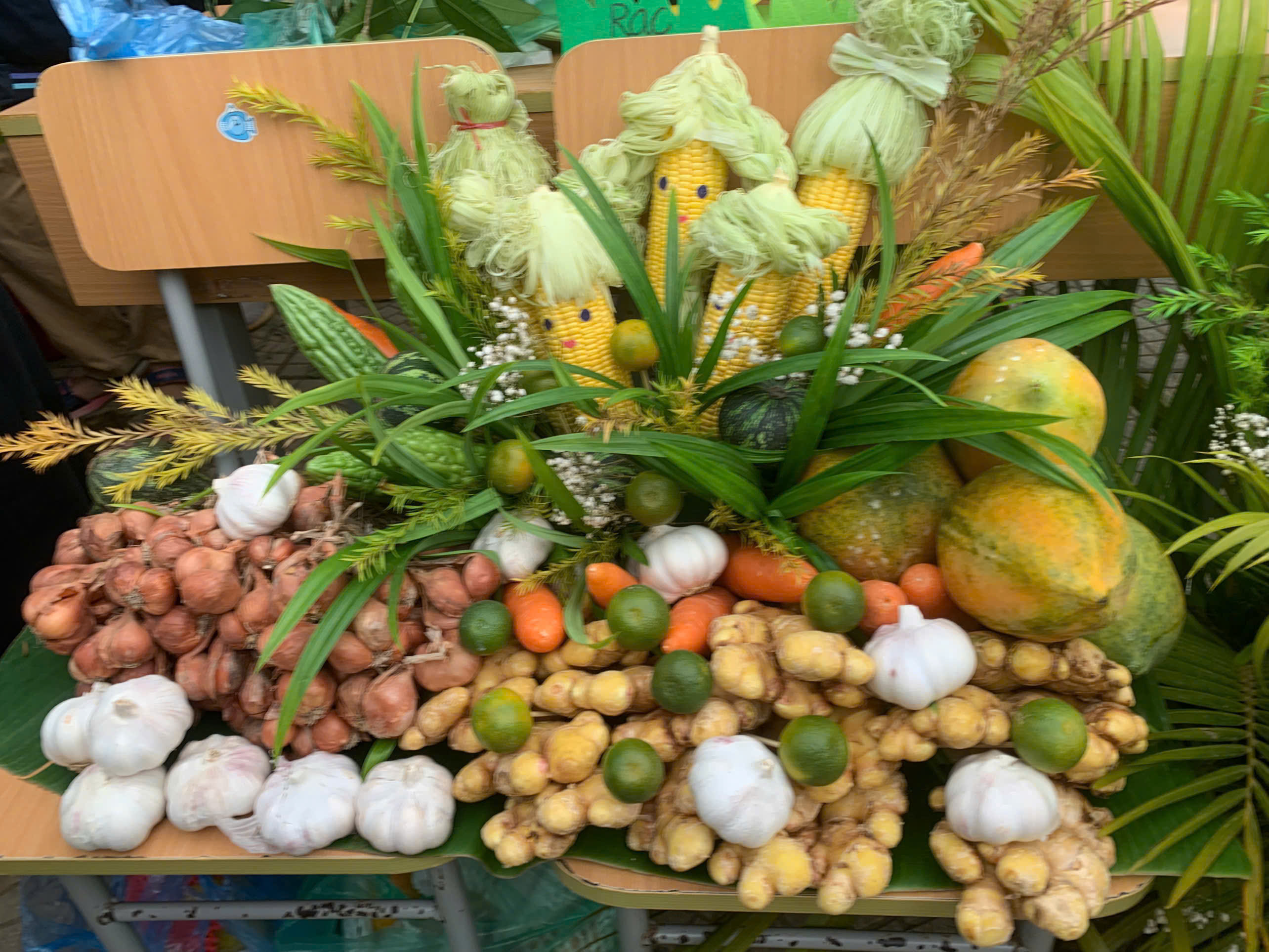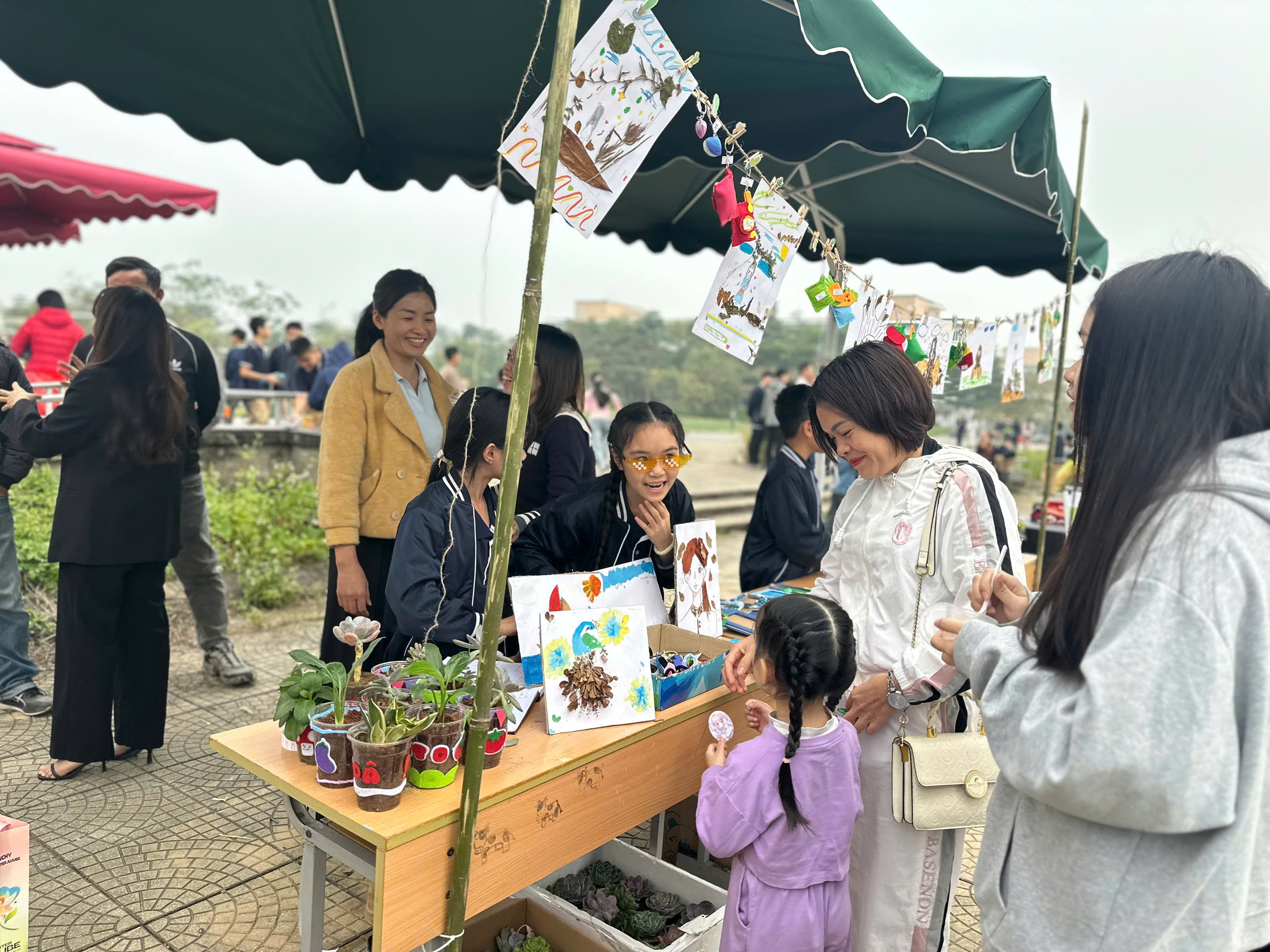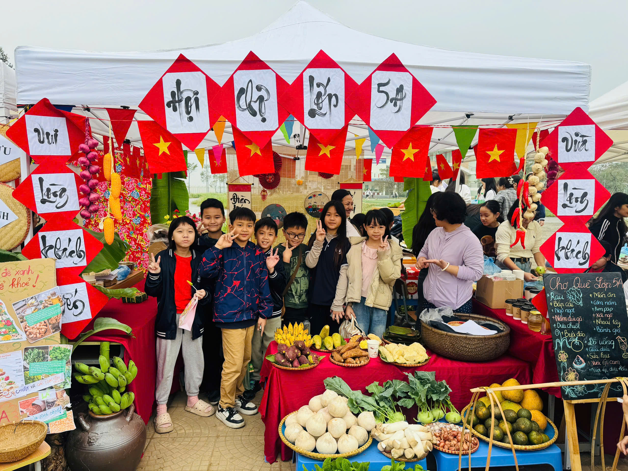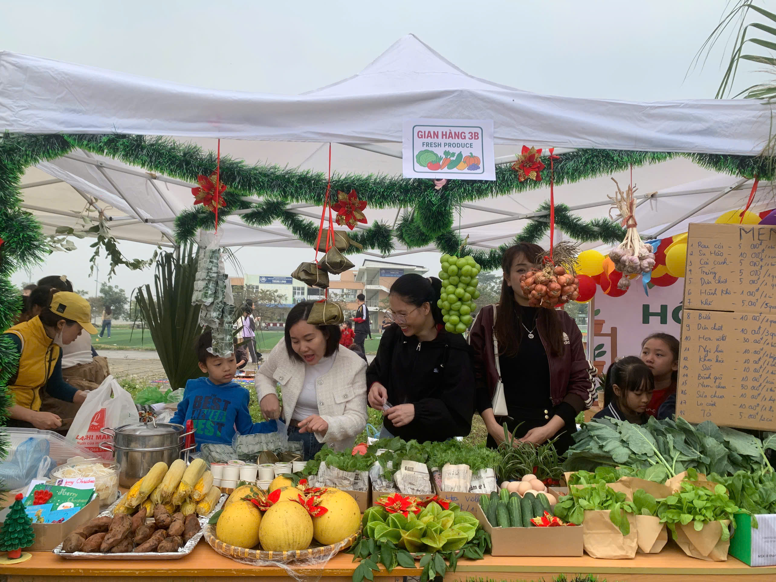 Ngay từ sáng sớm, các em học sinh đã rất hào hứng và sẵn sàng với vai trò là những người bán hàng, giới thiệu sản phẩm của lớp mình. Các gian hàng đã được học sinh chuẩn bị hết sức công phu, đúng theo tinh thần của một "Phiên chợ xanh." Các gian hàng bày bán phong phú các loại rau củ, thực phẩm sạch được thu hoạch từ chính vườn thực nghiệm của trường (thực hiện theo yêu cầu chương trình), cùng với đồ ăn và thức uống xanh, lành mạnh (như Trà chanh sả, Sữa chua, Xôi lá dứa, Bánh chuối hấp, v.v.).