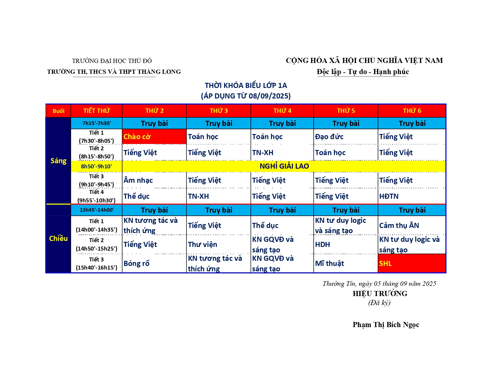 THỜI KHOÁ BIỂU KHỐI 9 HỌC KÌ I NĂM HỌC 2025-2026