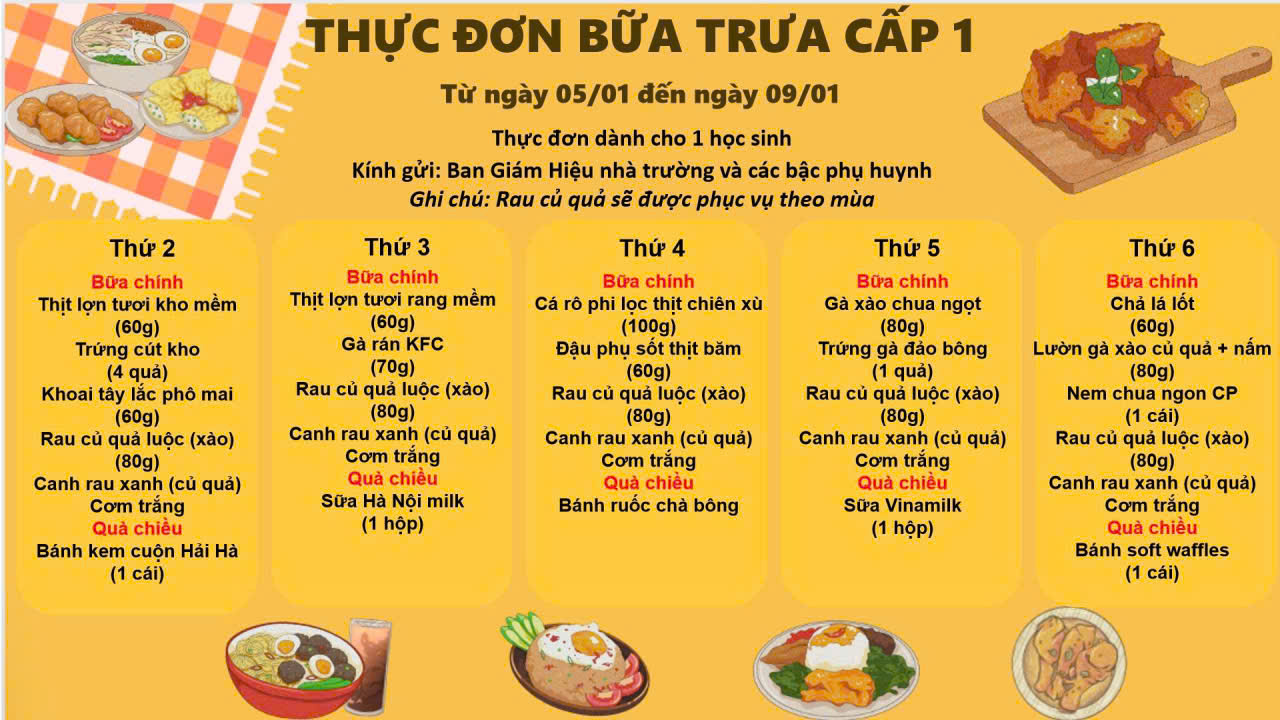 THỰC ĐƠN TUẦN 1 THÁNG 01 - 2026