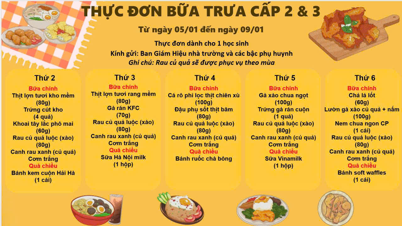 Thực đơn tháng 1 2026
