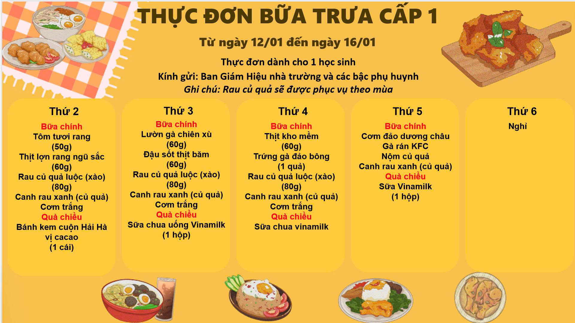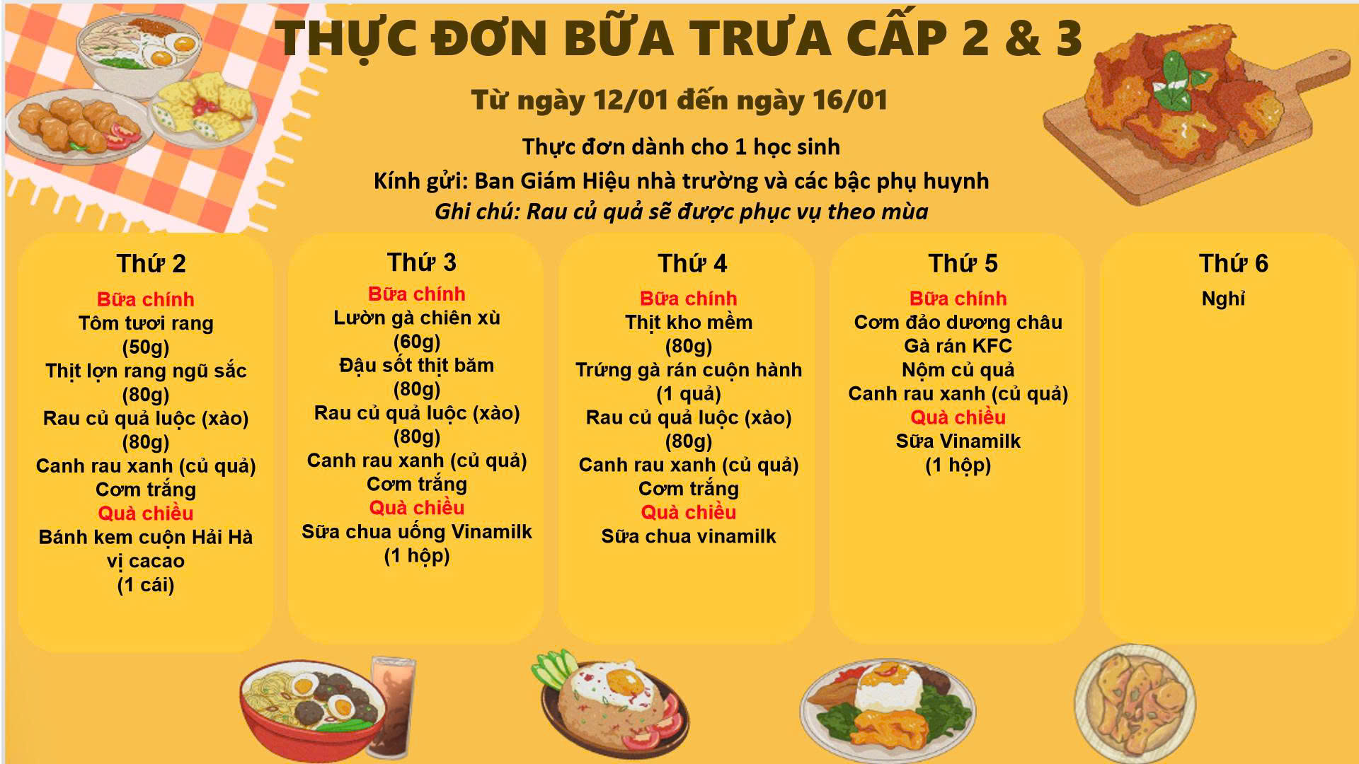 THỰC ĐƠN TUẦN 2 THÁNG 01 - 2026