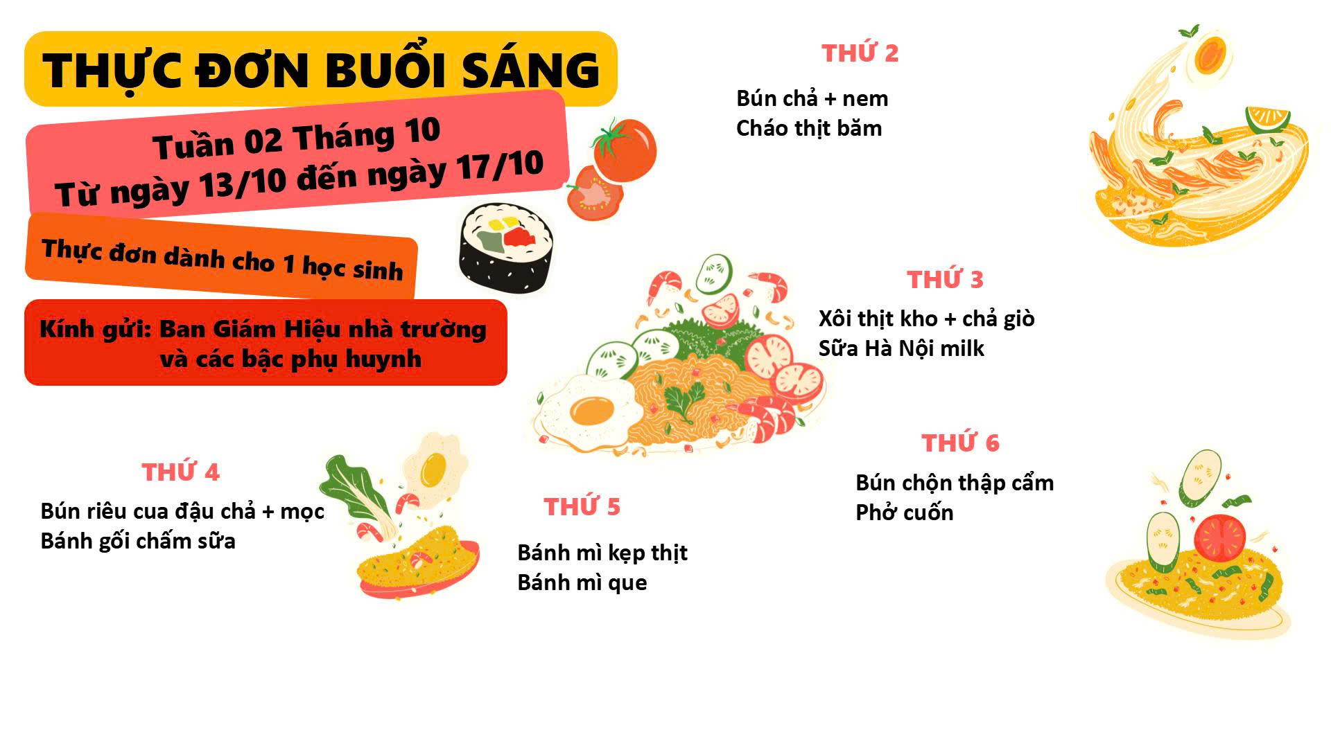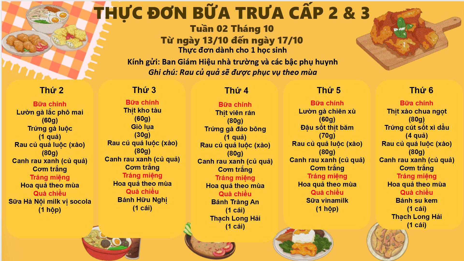 THỰC ĐƠN TUẦN 2 THÁNG 10 – 2025