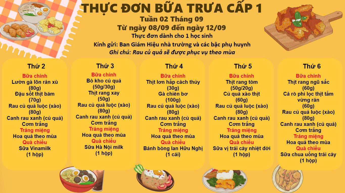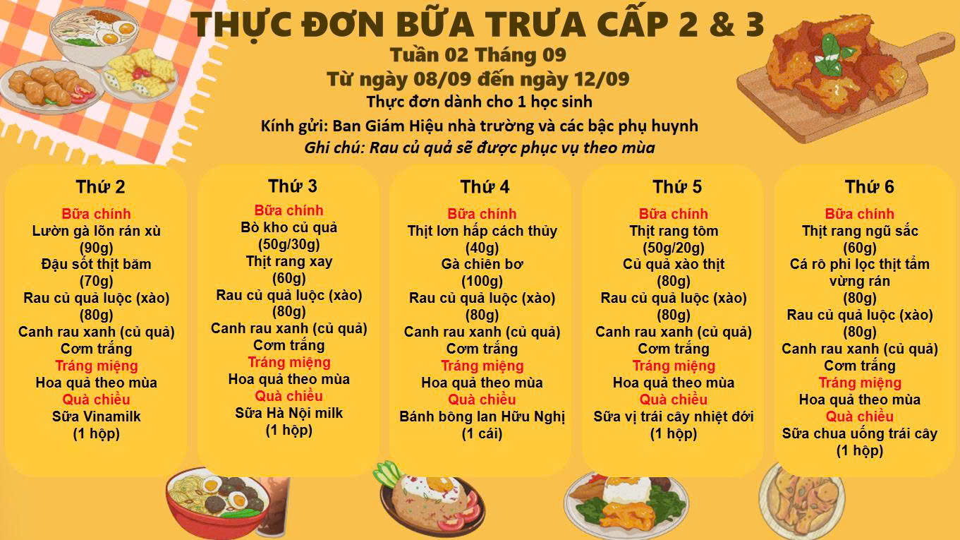 THỰC ĐƠN TUẦN 2 THÁNG 9 – 2025