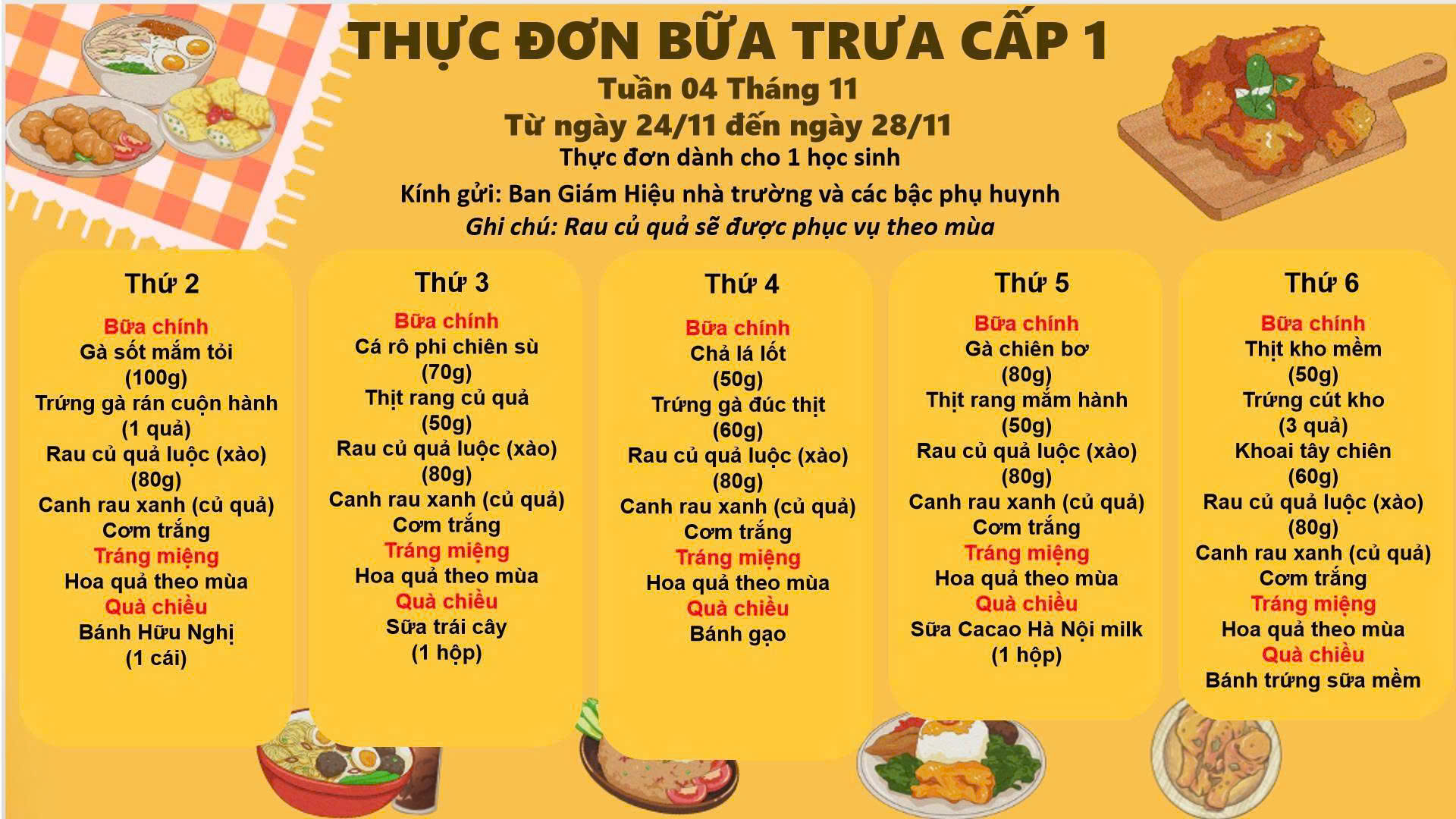 THỰC ĐƠN TUẦN 4 THÁNG 11 - 2025