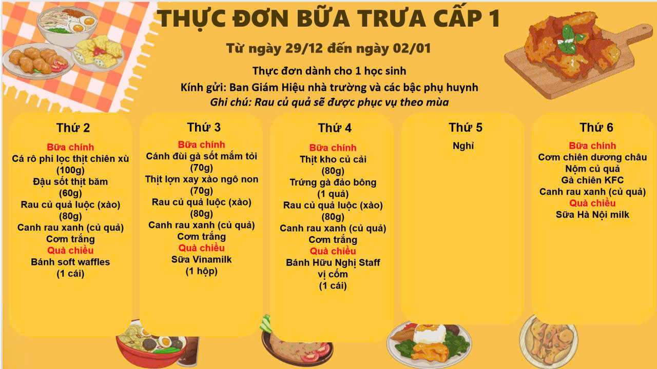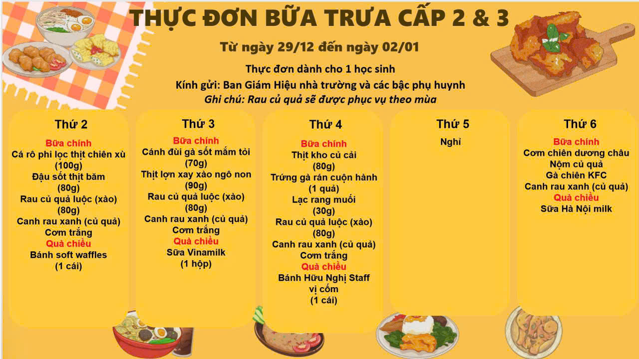 THỰC ĐƠN TUẦN 5 THÁNG 12 - 2025