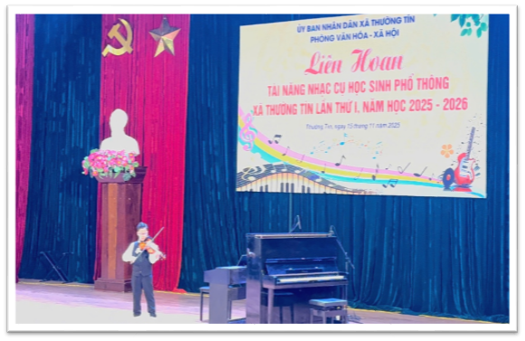 Sáng 15/11/2025, không khí tại Trung tâm Văn hóa, Thông tin và Thể thao xã Thường Tín trở nên vô cùng sôi động và tràn ngập âm nhạc, đánh dấu lần đầu tiên Liên hoan tài năng nhạc cụ học sinh phổ thông được tổ chức. Từ những tiếng dương cầm thánh thót, tiếng đàn guitar réo rắt, đến âm thanh trầm bổng của violin và organ, mỗi tiết mục là một màn trình diễn đầy đam mê và kỹ thuật. Cả hội trường như nín thở lắng nghe, rồi lại vỡ òa trong những tràng pháo tay cổ vũ nhiệt thành cho các tài năng nhí.